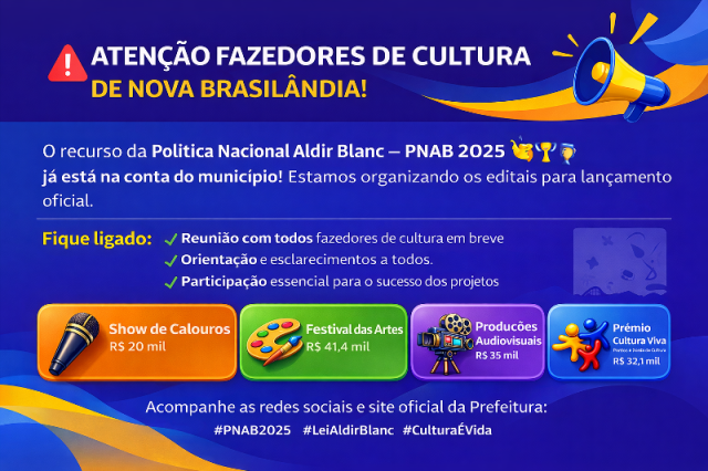 Nova Brasilândia confirma recebimento do recurso da Aldir Blanc – Ciclo 2 e prepara lançamento dos editais